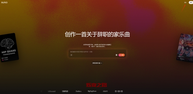 打开Suno主页,狠狠点击那个显眼的 "Create(创作)" 按钮。