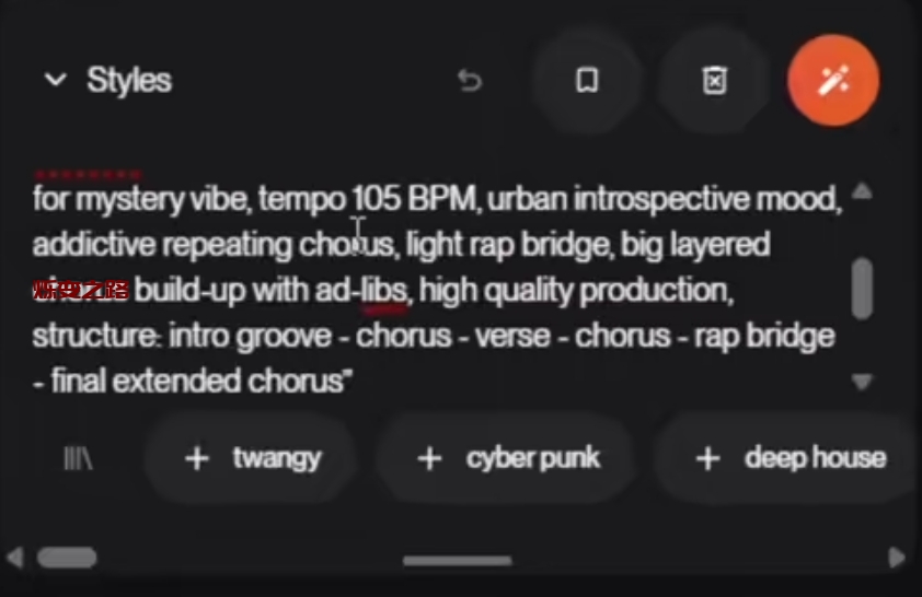 这是最能体现你审美的一步!在 Style(风格) 栏里,输入你想要的曲风。