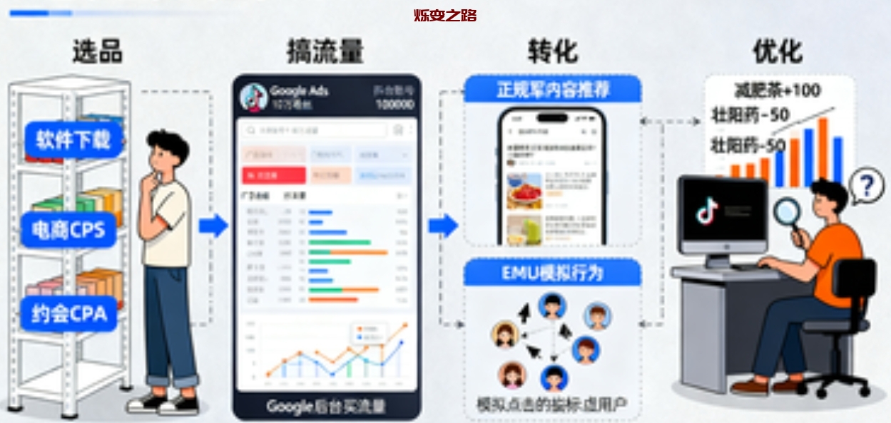 野路子:EMU(模拟用户行为)——自己注册自己买,刷数据拿佣金。这活儿现在越来越难干,平台眼睛亮着呢。不推荐,但你得知道有这回事。