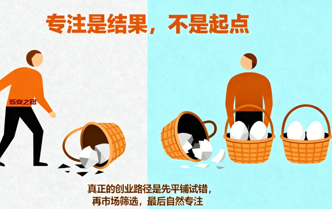 兄弟,不是创业难,是你一开始的姿势就错了。真正的专注,从来不是创业的起跑线,而是冲过初赛后的领奖台。你一上来就"专注",那不是创业,那是赌博——用你全部家当,赌一个你自己脑补出来的未来。
