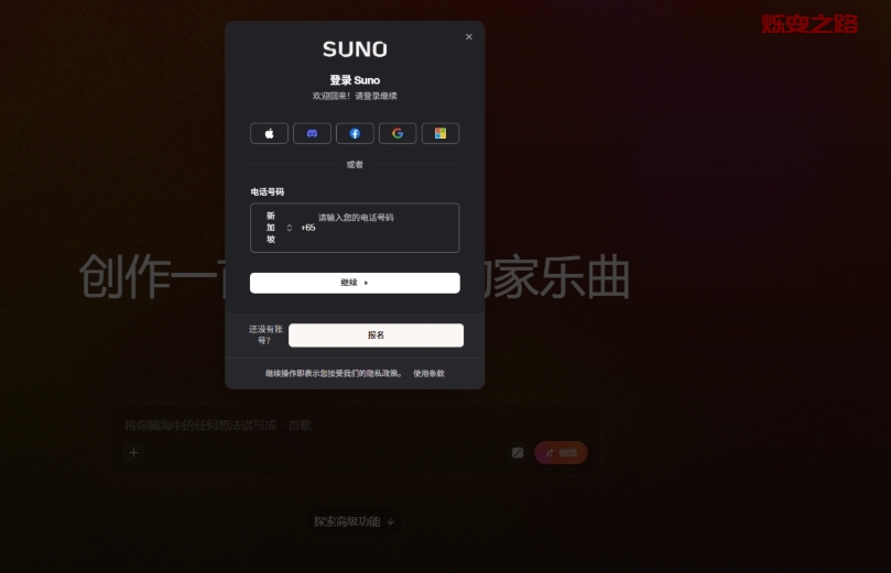 需通过 Suno 官方网址(suno.com)使用国际版,国内无法直接访问,需科学上网。(实在找不到可以留言我教你)推荐选择新加坡、日本等近邻国家的节点。