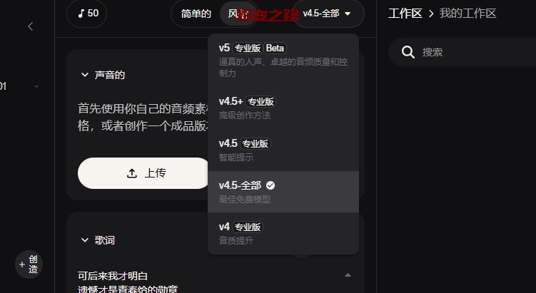 我们可以让它用我们自己的声音去唱歌,但我感觉还是不太成熟,除非是你要有特殊的用途,否则不建议。免费的我们最多只能用v4.5