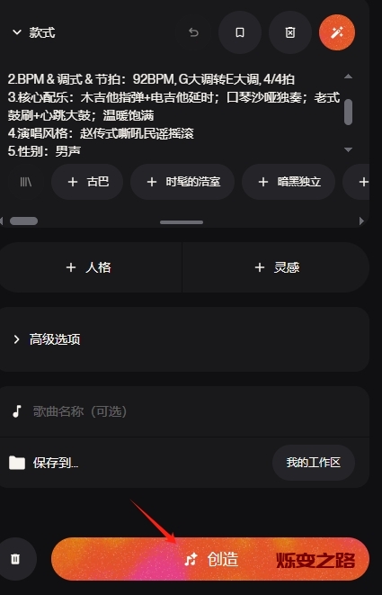 之后我们再生成一个歌曲的风格,在歌词生成以后下面直接复制提示词: