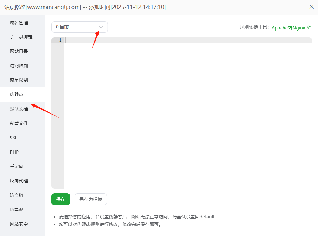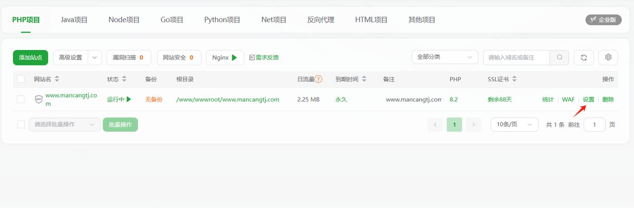 返回到宝塔——网站,设置最后一步。