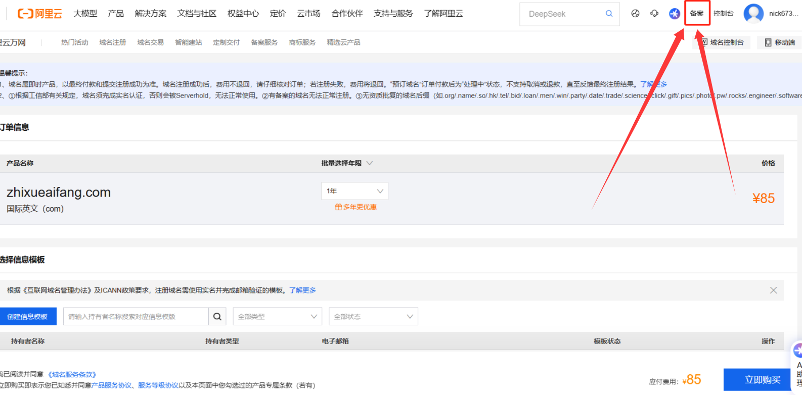 第一步:买域名