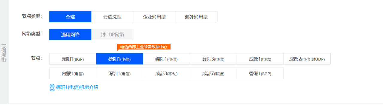 之后就是选择租机的配置了,节点没太大关系国内的就行,要注意的就是,有些节点只有特别高配置的云机,我们换一个就可以了。
