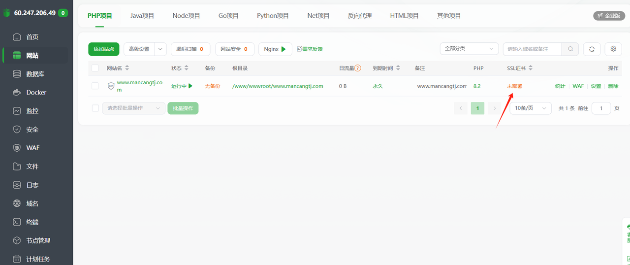 这个时候我们的网站其实就可以正常访问了,下一步我们需要申请ssl证书