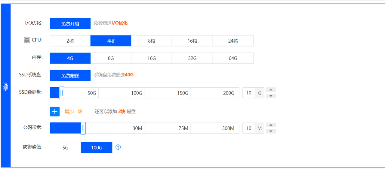 前期新手阶段配置推荐使用,4核 4G 就可以,这个配置基本就能满足一天1万左右的流量量了。(最便宜2核2G最多坚持到三四千流量几不行了可以自己去选择)