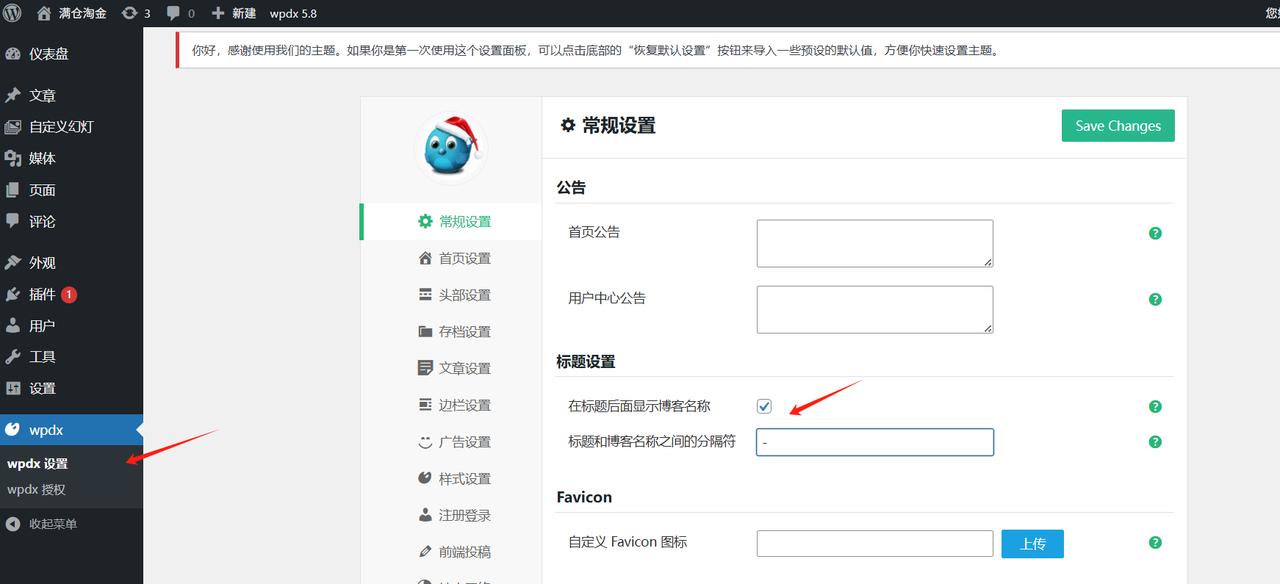 WordPress主题界面基础设置