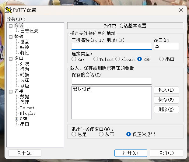 1、打开putty配置