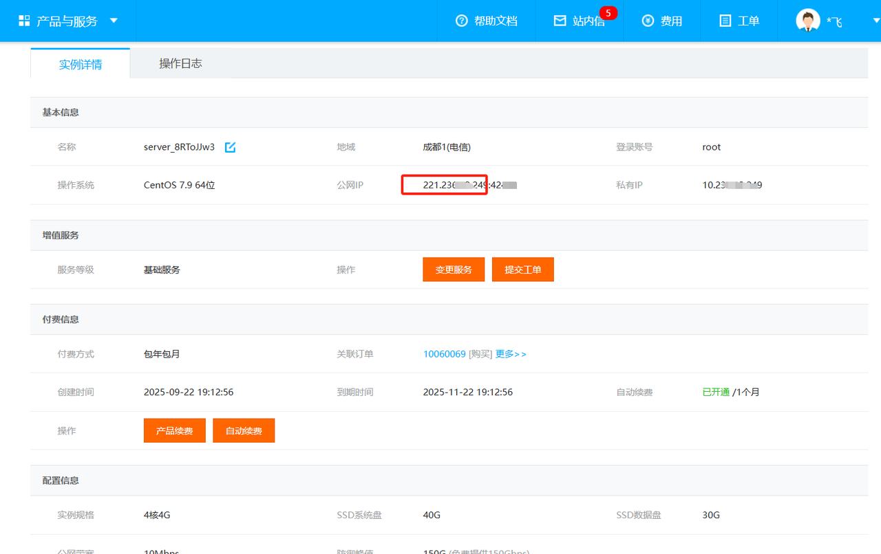 为了省钱,我并没有用大厂(阿里,腾讯)VPS服务器,所以接下来的演示,我都是用香香云,在哪设置安装过程都是一样。