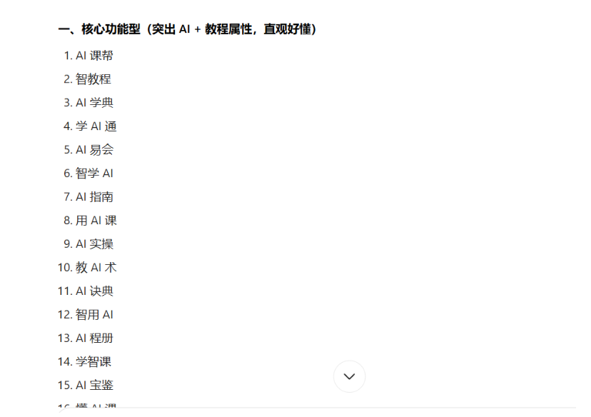 比如我们制作的网站是各种AI工具的使用教程,就可以起一些比较契合教学类的名字。