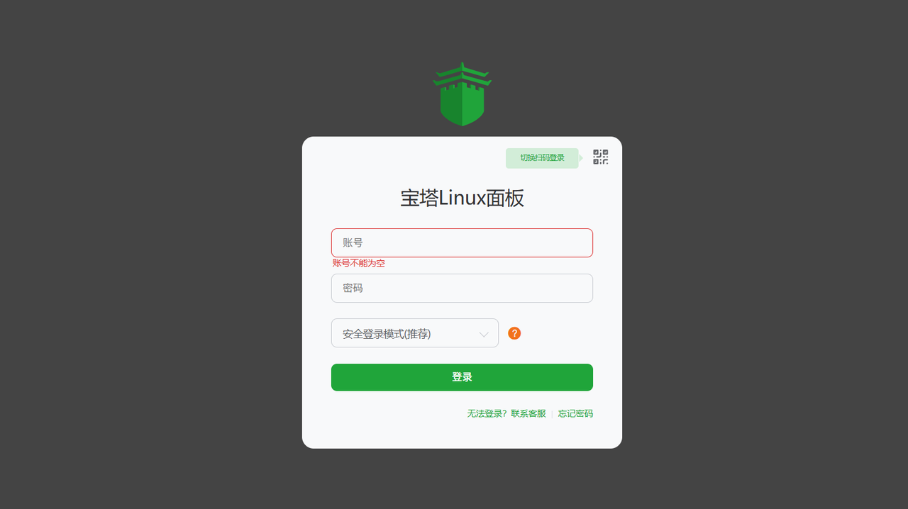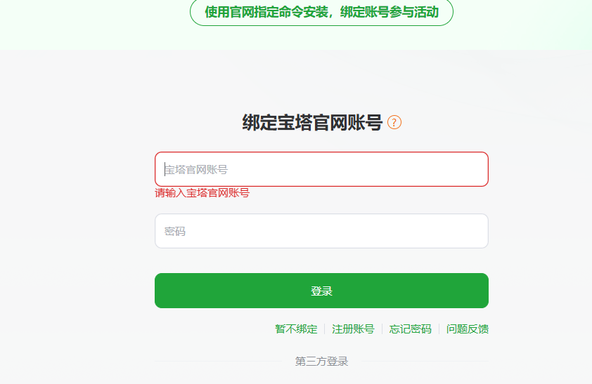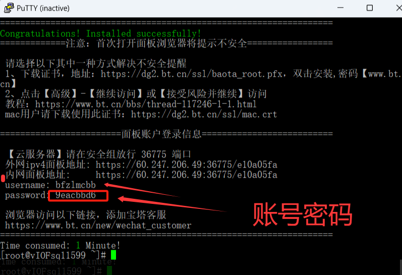 登录界面输入产生的账号和密码(不是你的宝塔账号注意)