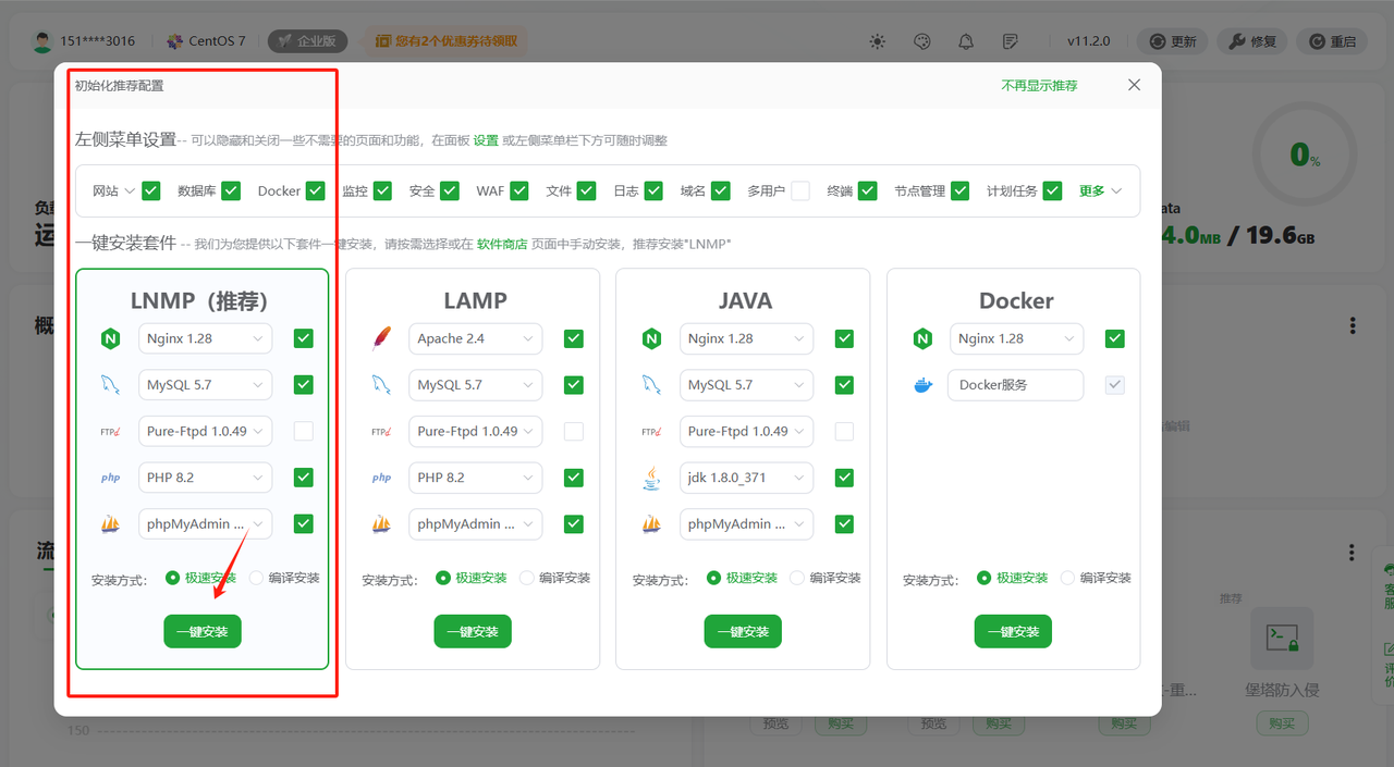 选择如下套餐一键安装