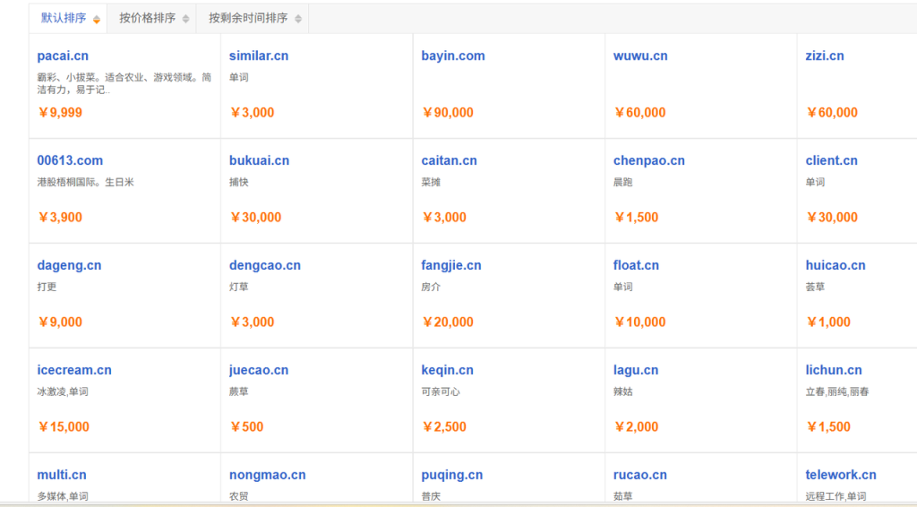 里面有很多的域名,但短字或者比较好的名字,售价会非常的高,对于初学者还是不太建议的。
