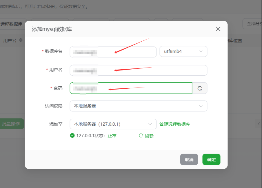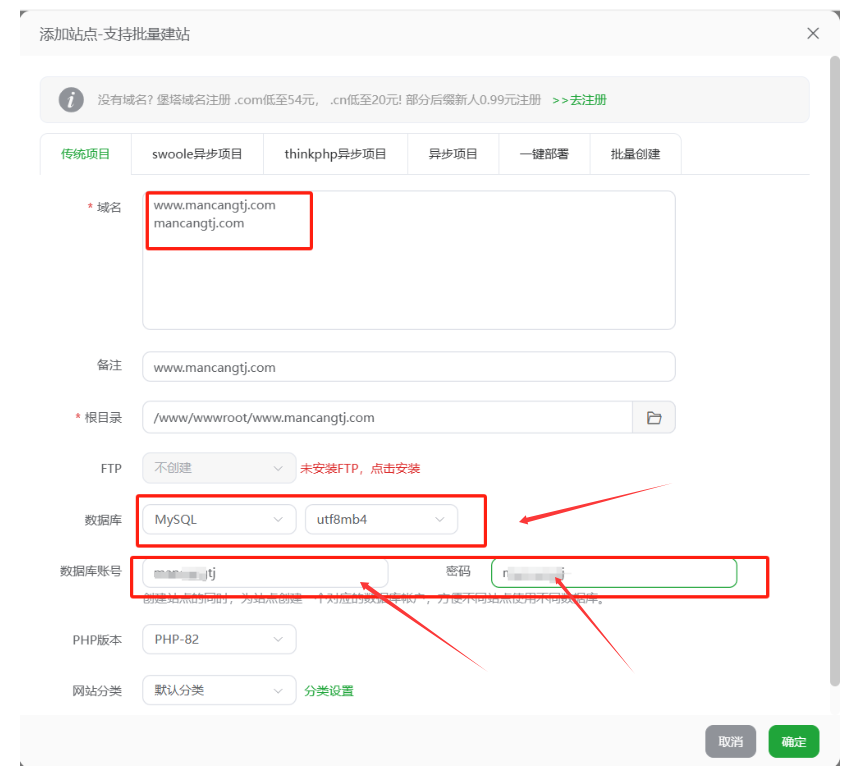 在上面步骤,我们单独在宝塔页面设置了数据库名和数据库密码。