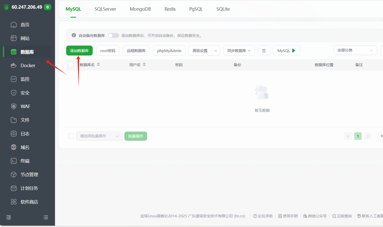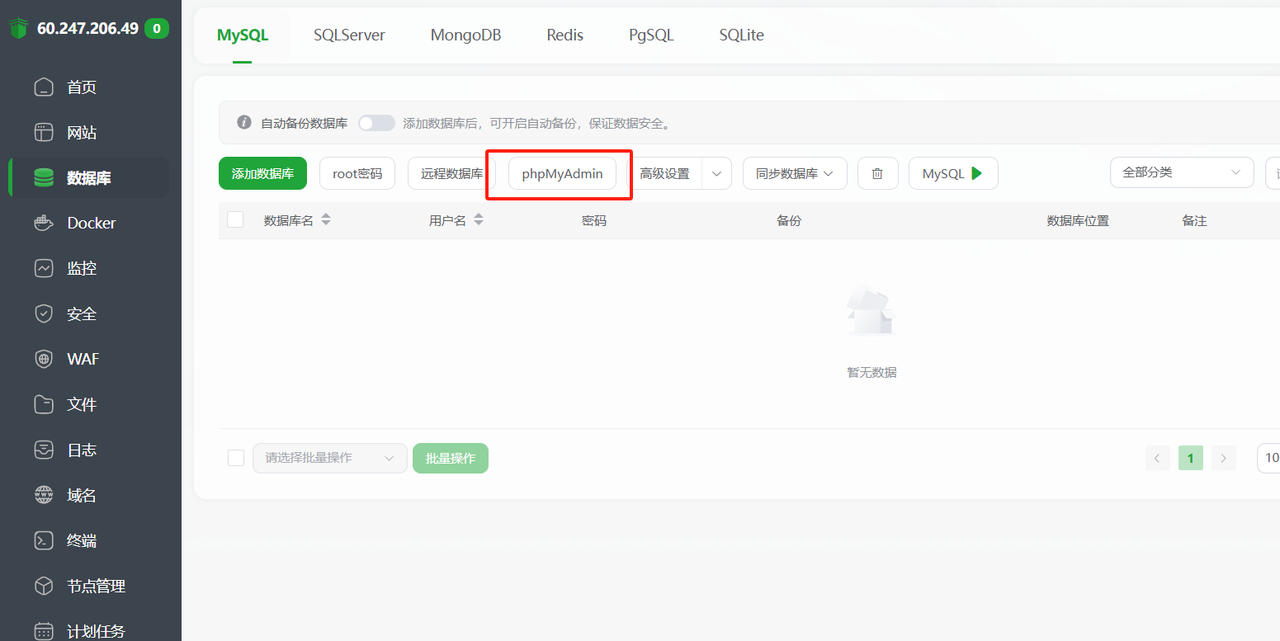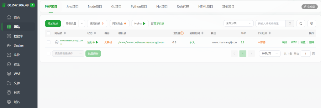 以后数据备份,网站流量,空间占用,插件安装等都可以到宝塔页面进行处理。