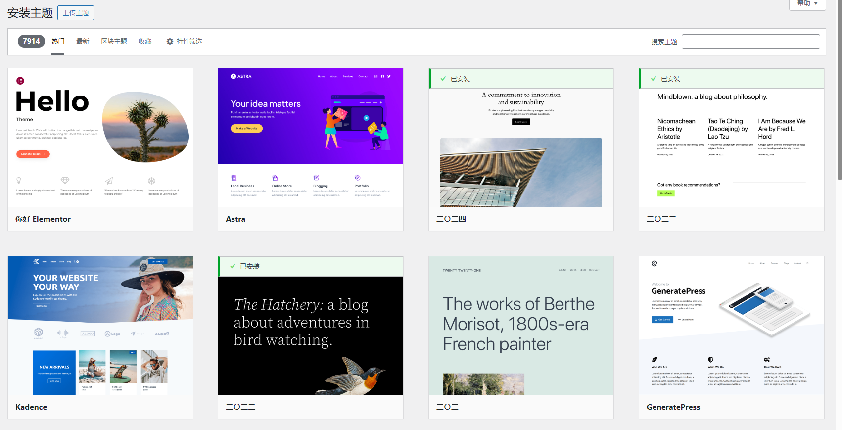 以及选择WordPress主题进行网站装修了。