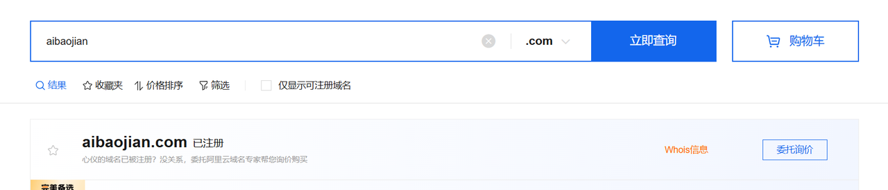 当然很多域名比较热门的名字会被别人注册过了,我们只能一个个的去试。