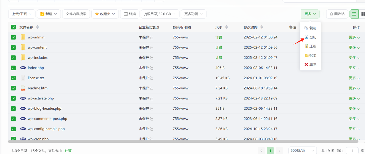 解压之后,会出现一堆文件,右侧剪切,全选——剪切