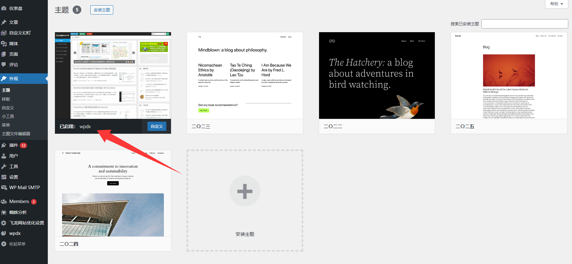 如下:wpdx(主题名词)——点击:启用
