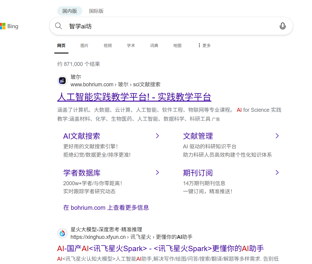 如果想我们注册的这个”智学ai坊“就是空白的,只要有人去搜索就会在最上面出现我们的网站。